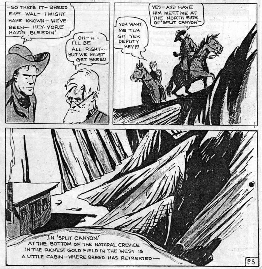 Early comic book work by "William E. Eisner" for Centaur's Western Picture Stories #3 ('Wild Tex Martin: Man-Hunt', April 1937).