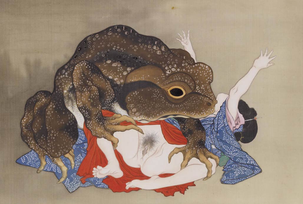 One of Eitaku's erotic drawings featuring bestiality with a toad.