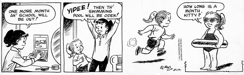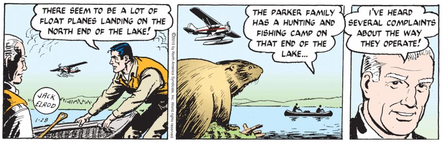 Hill and Elrod both assisted Dodd on the wildlife series 'Mark Trail' for several years. In 1978, Elrod took over the series completely, when Dodd retired and Hill, who did the Sunday pages, died. Elrod added several new characters to the series and even let Mark Trail get married at one point. He was assisted by James Allen from 2010. Allen became primary artist of the strip in April 2014, when Elrod retired. Besides 'Mark Trail', Elrod succeeded Cal Alley on 'The Ryatts' from 1965 until 1994. Jack Elrod passed away on 3 February 2016, at the age of 91.