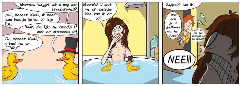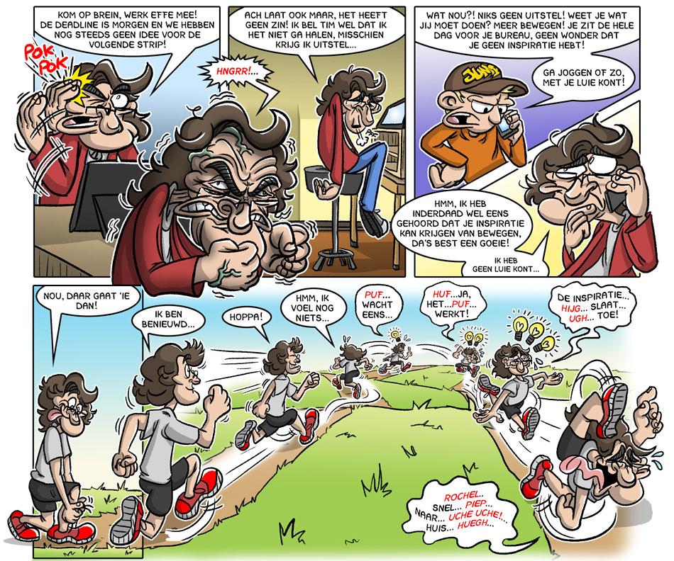 In 2021, Van Engelenhoven won the StripBattle of Personalia's Stripglossy magazine, which earned him a recurring spot in the magazine during the period of one year. This became 'Hersenspinsels' (2021-2022), a funny autobiographical look at the life of a young comic artist. With support of Margreet de Heer, he has continued this theme with 'De Tekenaar' (2024- ) in Jump, a youth magazine also published by Personalia. In this more exaggerated version, the main star is a cartoonist who always misses his deadlines. Since March 2025, Van Engelenhoven has also appeared in the popular science magazine Zo Zit Dat with 'Wie Had Dat Gedacht?!', a comic feature about a girl and her uncle who go to a VR-version of the past to learn all sorts of interesting things about famous scientists.