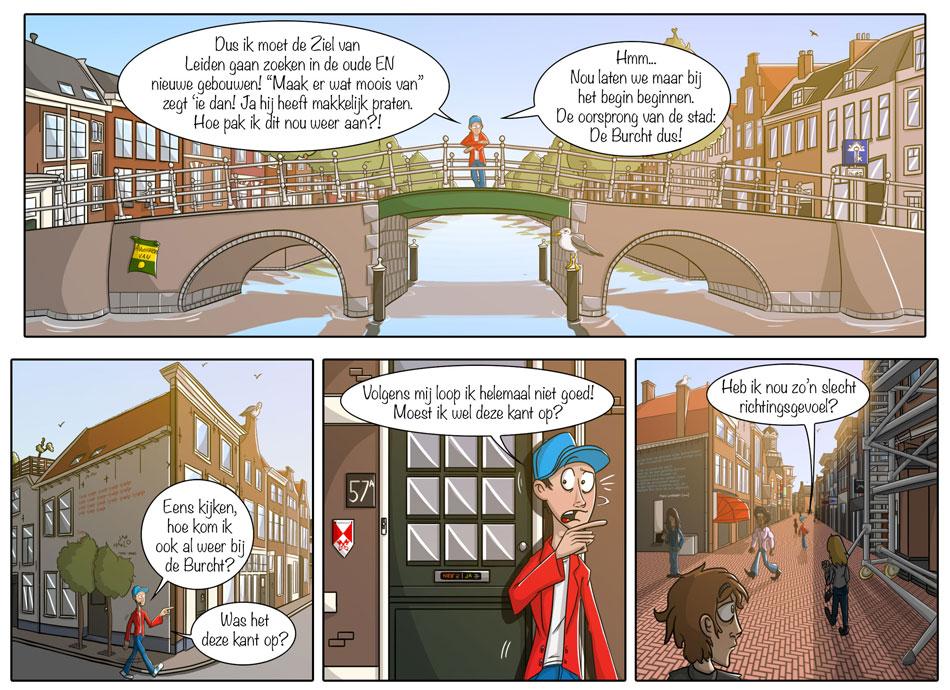 While still a teenager, Van Engelenhoven created his first commissioned comics, all for regional projects in the city of Leiden. At age fifteen, he created the comic book 'Walter Benjamin: Cultuur Barbaar!' (2013) for a local art and music festival with the philosopher Walter Benjamin as the theme. In 2017, he drew the chapter 'Archeologie & Architectuur' in the local comic book 'De Ziel van Leiden', published by FutureManagement on the occasion of a research project for the "soul" and essence of the city of Leiden, initiated among other people by Robert van Oirschot and Nils Bierman. Among the other contributing comic artists were Eline W., Nicoline Heemskerk, Caspar ten Dam, Rooske Eerden and Abel van Oirschot. In the following year, Van Engelenhoven and Nils Bierman alternated on the artwork of 'De Ziel van VBM (2018)', a similar comic on the occasion of the 100th anniversary of the Trade Union for Civilian and Military Defense Personnel (VBM). Other commercial artwork during this period were cartoons for the logistics company MendriX. In the meantime, Van Engelenhoven created his own small press comics, for instance 'Blame it on the Lag' (2015) and 'Radboud' (2016), which he sold at comic festivals.