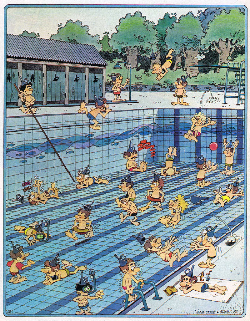 He continued this series of cartoon pages for fifteen years, and nine book collections were published by Le Lombard. Also for Tintin, he came up with the comic series 'Les Égarés' (1977), 'William Lapoire' (1978, 1985-1988, text by Didgé) and 'Les Cases de l'Oncle Ernst' (1983). In 1980 he was one of many Belgian comic artists to make a graphic contribution to the book 'Il était une fois... les Belges'/'Er waren eens Belgen' (1980), a collection of columns and one-page comics, published at the occasion of the 150th anniversary of Belgium. The same year he was one of several artists to make a graphic contribution to ‘Pepperland’ (1980), a collective comic book tribute to the store Pepperland, to celebrate its 10th anniversary at the time.
