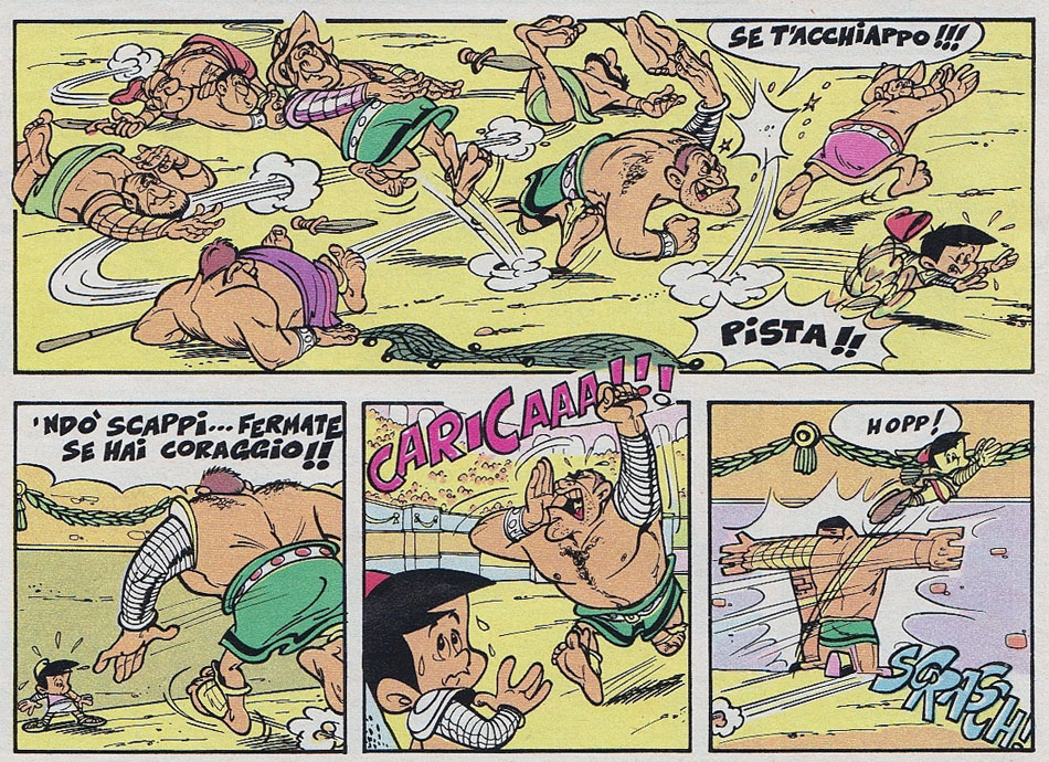 In 1970, the Framas team-up of Fecchi and Valeriani also appeared in Il Giornalino magazine with a magical adventure starring the character 'Marcellino'. Set in Ancient Rome, the feature showed strong influences from Albert Uderzo and René Goscinny's 'Astérix' comics. Another Framas creation for Il Giornalino was 'Serafino'.
