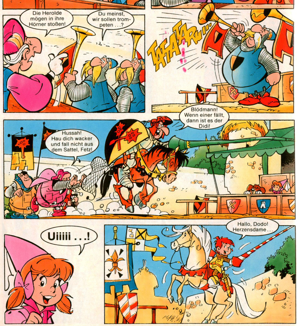Between 1985 and 1989, Fecchi was an artist for Knax, the bimonthly magazine of the German savings banks. In the period 1984-1991, Fecchi was additionally an illustrator for Pumuckl magazine, starring the mischievous kobold from the children's books by Ellis Kaut and the TV series 'Meister Eder und sein Pumuckl'. Published by Merlin Verlag Glarus, the magazine was edited by the daughter of Rolf Kauka, Mascha Pohl-Kauka. Another contributor to the magazine was fellow Kauka artist Florian Julino. For the same German savings bank, the Sparkasse, Fecchi and Klinke additionally created a story of 40-50 pages for a dummy issue of another comic, 'Die Miesel' (1986), although it is unknown if the title ever saw the light.