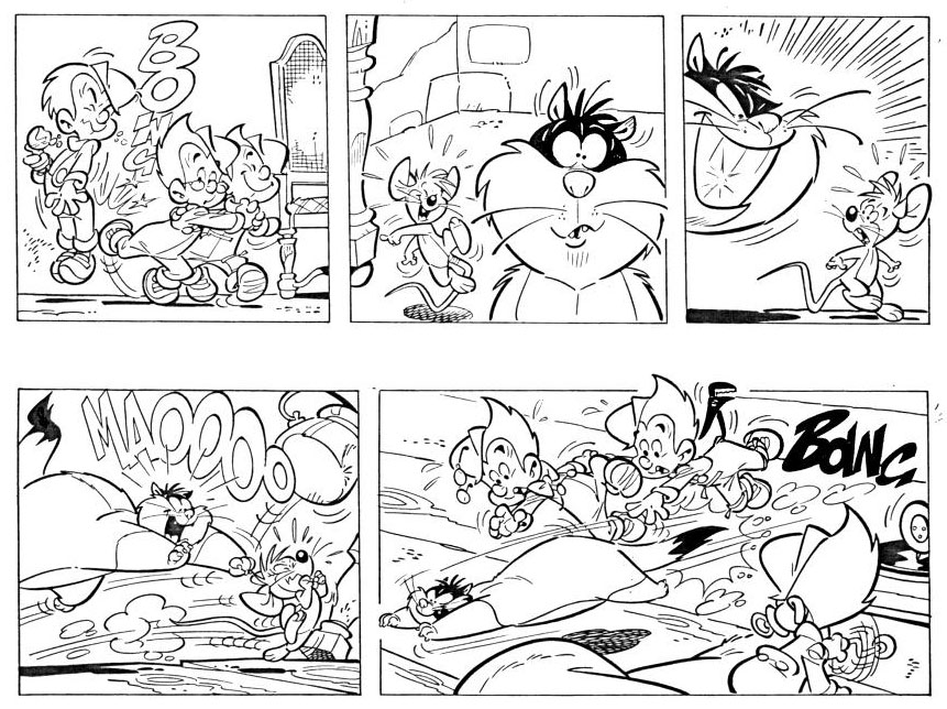 Around 1970, Fecchi began an association with Studio Giolitti in Rome, which marked the beginning of his international career. Through the studio, he spent the first half of the 1970s drawing licensed comic book stories with Warner Bros. and MGM cartoon characters for the Gold Key comic book line of Western Publishing in the USA. Characters he drew regularly were Tex Avery's 'Bugs Bunny', Friz Freleng's 'Tweety and Sylvester' and Hanna-Barbera's 'Tom and Jerry'. While working on these stories, Fecchi discovered he enjoyed drawing underdogs like the cats Tom and Sylvester the most, something he later also encountered when drawing Rolf Kauka's Lupo and Walt Disney's Donald Duck and Big Bad Wolf.