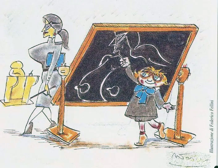 Not interested in listening to boring teachers, Fellini only finished high school. His attempt to study law at the University of Rome in 1939 was merely a ploy to please his parents. He never attended class and already had a more satisfying career as a columnist for the bi-weekly humor magazine Marc'Aurelio. As he also had a gift for drawing, he earned money as a caricaturist too. He sketched guests in restaurants and cafés and drew caricatures of film stars for the Fulgor cinema in Rimini. The theater manager paid him with free film tickets.