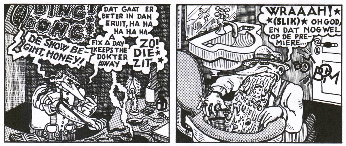 Despite his small body of work, Flip Fermin and his striking personality have left a lasting impression on many people in the Dutch comics community. In the early 1970s, he was a salesman in Kees Kousemaker's Amsterdam comics shop Lambiek, where his infectious enthusiasm about certain books captivated many. Apart from his affiliation with the Dutch underground comix scene, Fermin was friends with Pep editor Jan de Rooij and Donald Duck's Thom Roep, who have praised him for his ingenious use of language. Fermin was elemental in the debut of the duo Windig & De Jong at the publishing house Oberon, and also guided the young Gerard Leever in his first steps as a comic artist in the Wammes comic shop in Bussum (of which Fermin's sister Jet was the owner).