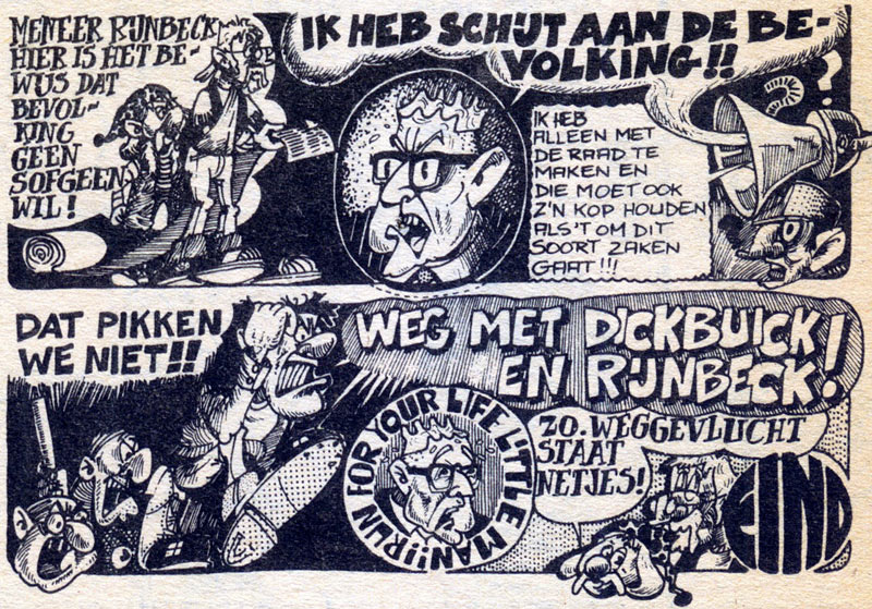 Rob Figee was born in Germany, but lived most of his life in the Netherlands. He studied at the Art Academies of Antwerp and Rotterdam. he contributed to several alternative (comic) publications of the 1970s, such as Joost Swarte's Modern Papier, Stripje, De Havenloods and Metronoom. Among his creations are 'Sofgeensof' in Modern Papier and 'Waldo' in Stripje. He also contributed to the sole issue of Dick Maas' Formule S. His comics mainly dealt with social issues. In later years, he focused on architectural illustration.