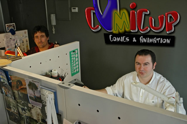 Frankie Figueras (left) and Diego Canovas (right) at Studio Comicup in 2004. Photo © José Cánovas.