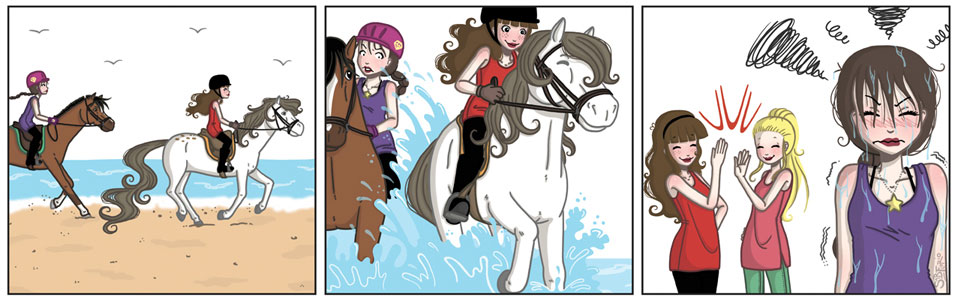 Since 2011, Sabrina Floria has been one of the regular illustrators for Penny, a horse-themed magazine for girls, published by Holco Publications in the Netherlands. She makes the drawings for the section 'BPV 4-ever' (2011-2015), which follows the everyday life of horse fan Lein in both diary and comic strip format. In addition, she illustrated the comic feature about 'Bibi & Bo' (2013-2015). In the 2020s, she made illustrated versions of the earlier photo comic series 'Duinmanege', written by Frank Jonker.
