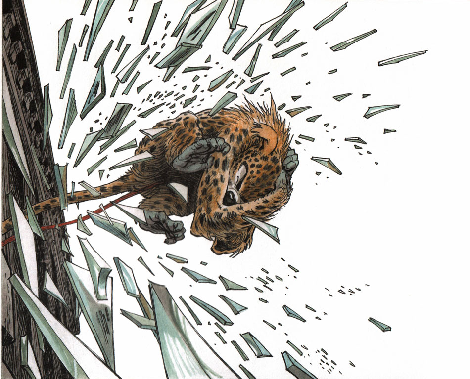 Frank Pé's other major work is the dramatic graphic novel trilogy 'Zoo', created in collaboration with the Frenchman Philippe Bonifay, originally a theatrical writer. A chance meeting at the Maubeuge comic festival formed the basis for their collaboration. The two men were coincidentally placed next to each other, and immediately hit it off. A couple of years later, Frank proposed to the writer his concept in which a Normandy zoo serves as the setting for psychological character development. For the story's four protagonists, the park with its Art Nouveau design and exotic animals forms a safe haven against the grim reality of the 1910s. The animal-loving medical doctor Célestin created the zoo after inheriting a large fortune. His adoptive daughter, the jumpy Manon, spends all her time taking care of the animals, while maintaining a romantic fling with the sculptor/designer Buggy. Buggy was physically modeled after Bonifay, and his sculptures were based on the work of animal sculptor Rembrandt Bugatti. The stand-out character in 'Zoo' is Anna, a refugee from the Russian steppes who lost her nose during a brawl in her native village. Finding her place within the zoo family, she gradually refinds her self-respect and joy for life.