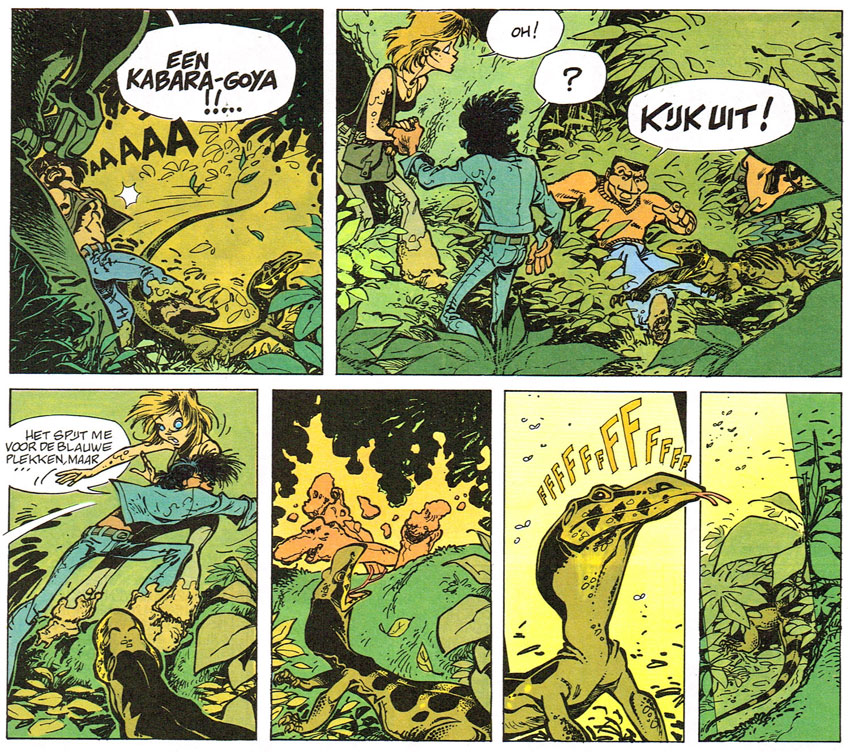 André Franquin is the comic artist Frank Pé admired the most. He took great pride in the fact that Franquin had expressed his admiration for him too. Pé was one of the contributing artists to the collective comic book celebrating the 50th anniversary of Franquin's 'Gaston' in 2017. In his 'Portraits héroïques de Frank Pé' (Dupuis, 2008), the artist painted many of his favorite comic characters. Besides Hugo Pratt's 'Corto Maltese', Peyo's 'Smurfs' and Will and Rosy's 'Monsieur Choc', the book featured several secondary characters from Franquin series, such as Monsieur De Mesmaeker and Herr Doktor Kilikil. The backstory of the grumpy animal trainer Noé from Franquin's stand-out 'Spirou' story 'Bravo, les Brothers!' plays a prominent role in Frank's graphic novel 'La Lumière de Bornéo' (2016). It was part of the 'Spirou & Fantasio' spin-off collection in which several authors give their own interpretation of the classic series.