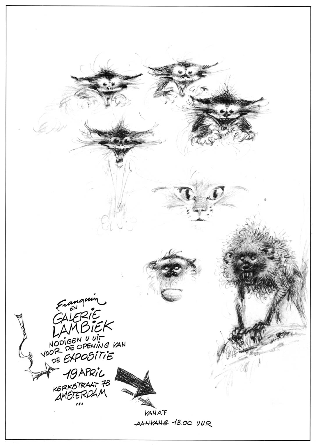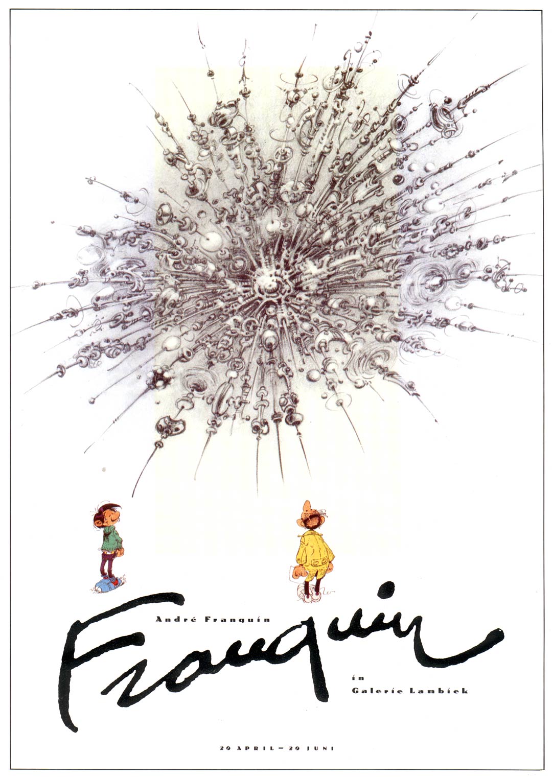 From April until June in 1991, André Franquin exhibited a selection of his traditional comics work and abstract black-and-white sketches at Gallery Lambiek.