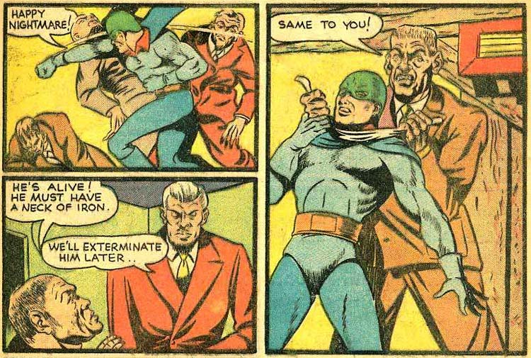 Walter Frehm was an American comic book artist and newspaper cartoonist. He was born in 1912 in New York City and got his art education from the Pratt Institute. He worked with Will Gould on 'Red Barry' and ghosted Ken Kling's 'Joe and Asbestos' strip for a while. Between 1939 and 1941, he was also active for the comic books published by Fox Comics as Walter Frame. He created 'The Green Mask' for titles like Mystery Men Comics and The Green Mask.