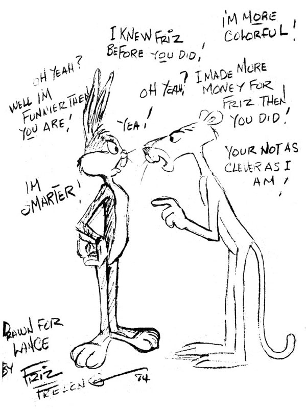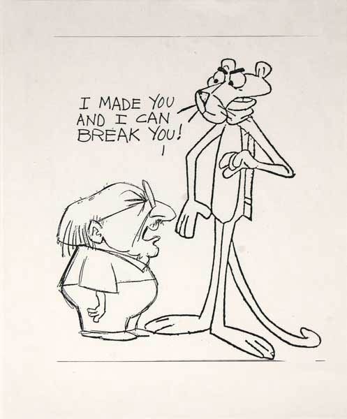 Bugs Bunny and the Pink Panther argueing, by Friz Freleng, 1974.