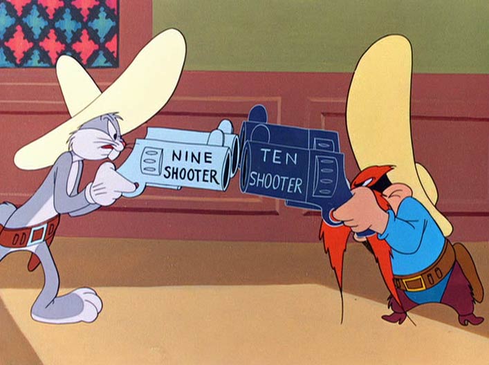 Bugs Bunny & Yosemite Sam in 'Bugs Bunny Rides Again' (1948).