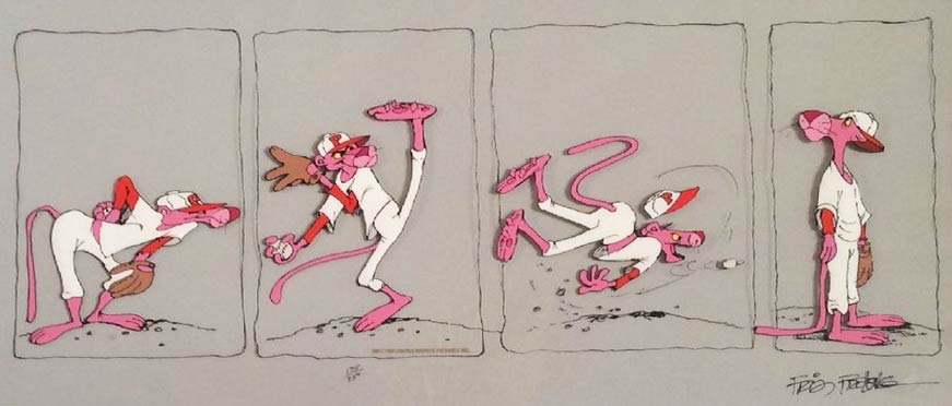 'Pink Panther' animation art, reworked into comic strip format for a limited edition print of 750 pieces (1992).