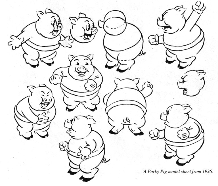 Model sheet for Porky Pig, 1936, designed by Friz Freleng.