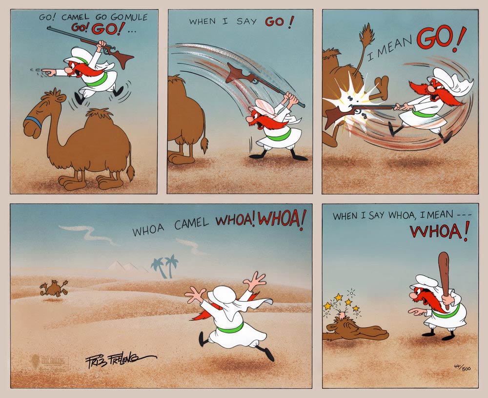 Animation art from the 1955 short 'Sahara Hare', recreated into comic strip format for a limited print series of 500 pieces (1993).