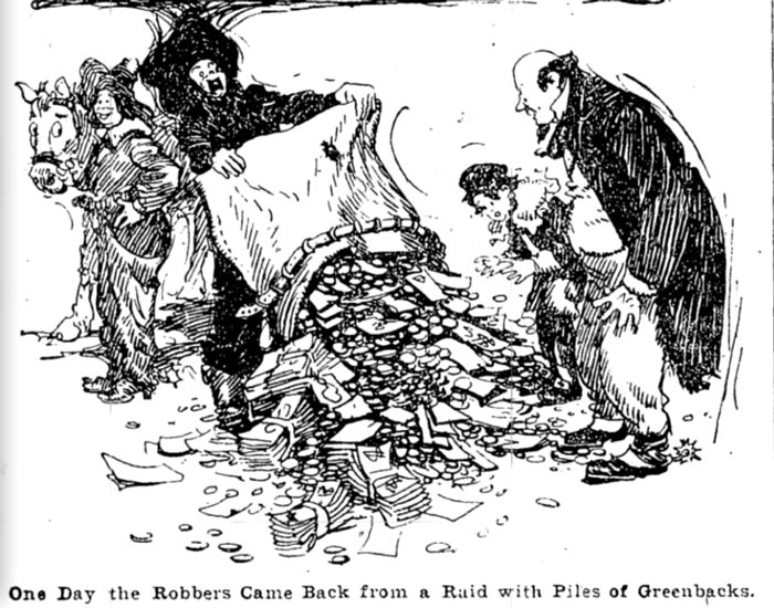 George Frink additionally illustrated two books by George Wilbur Peck, namely 'Peck's Bad Boy with the Circus' (1906) and 'Peck's Bad Boy with the Cowboys' (1907), both revolving around the mean-spirited "bad boy" Hennery Peck.