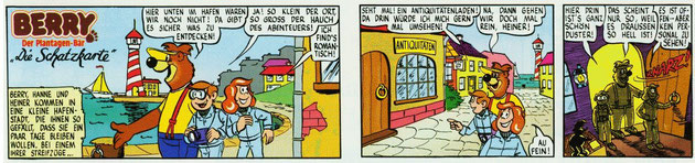 Between 1985 and 1990, Fuchs and Reitberger worked for the cocoa drink brand Kaba, which used the anthropomorphic bear 'Berry der Plantagenbär' ('Berry the Plantation Bear') as their mascot. Fuchs wrote stories for a series of advertising comics starring Berry and a group of children, which he also lettered. Reitberger drew the stories while Fuchs inked. The twelfth episode of 'Berry', however, was completely written and drawn by Fuchs himself. About 45 episodes were published.