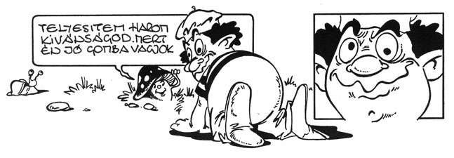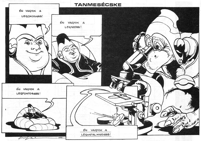 While in Hungary, Fujkin continued to operate on the comic scene, experimenting with multi-page pantomime comics such as 'Kapcsolat' ("The Relationship" in Hepiend Képes Regényújság #6, 1990). He took part in the first Hungarian comicons, first in Tokaj (1992) and then in Nyíregyháza (1993), where he was elected as "Visual Novel Artist of the Year".