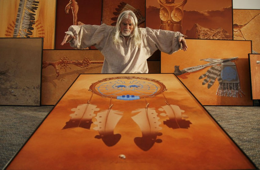 In Canada, Fujkin dedicated himself even more to paintings inspired by well-known musical compositions. With his so-called "Fujkin's Music Vision" style, his imagery creates, in the artist's own words, "the techno-surrealistic metamorphosis of the world of music into visual arts". Fujkin also became captivated by the culture and tradition of the Native Americans. He was especially inspired by the spiritual elements in the musical work of Robbie Robertson (The Band) a rock musician who is of Cayuga and Mohawk descent. Fujkin's inspiration led to his series of 'Blue Owl' paintings, in which he captures the culture, history and music of the Native Americans in Canada. The artist sees it as his mission to create a bridge between Western culture and Native American traditions. This is also reflected in his work as art designer for the Metronome Canada Music Museum, for which he has designed several musical sculptures.