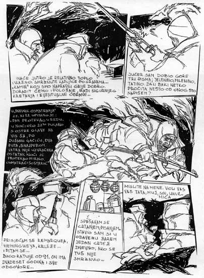 Gacic's experimental and often innovative comics appeared in magazines like YU Strip and Strip and the newspapers Vjesnik and Večernji list. By the 1990s he was publishing stories like 'Grad u mraku' in Patak, and the football comic 'Polušpica' in Sprint. He also worked with Darko Macan and Radovan Devlić on the award-winning 'Strossmayer' biography in 1993. Gacic then released the historical comic 'Bitka kod Siska'. He also ventured into small press self-publishing, launching his fanzine Flit in 1997.