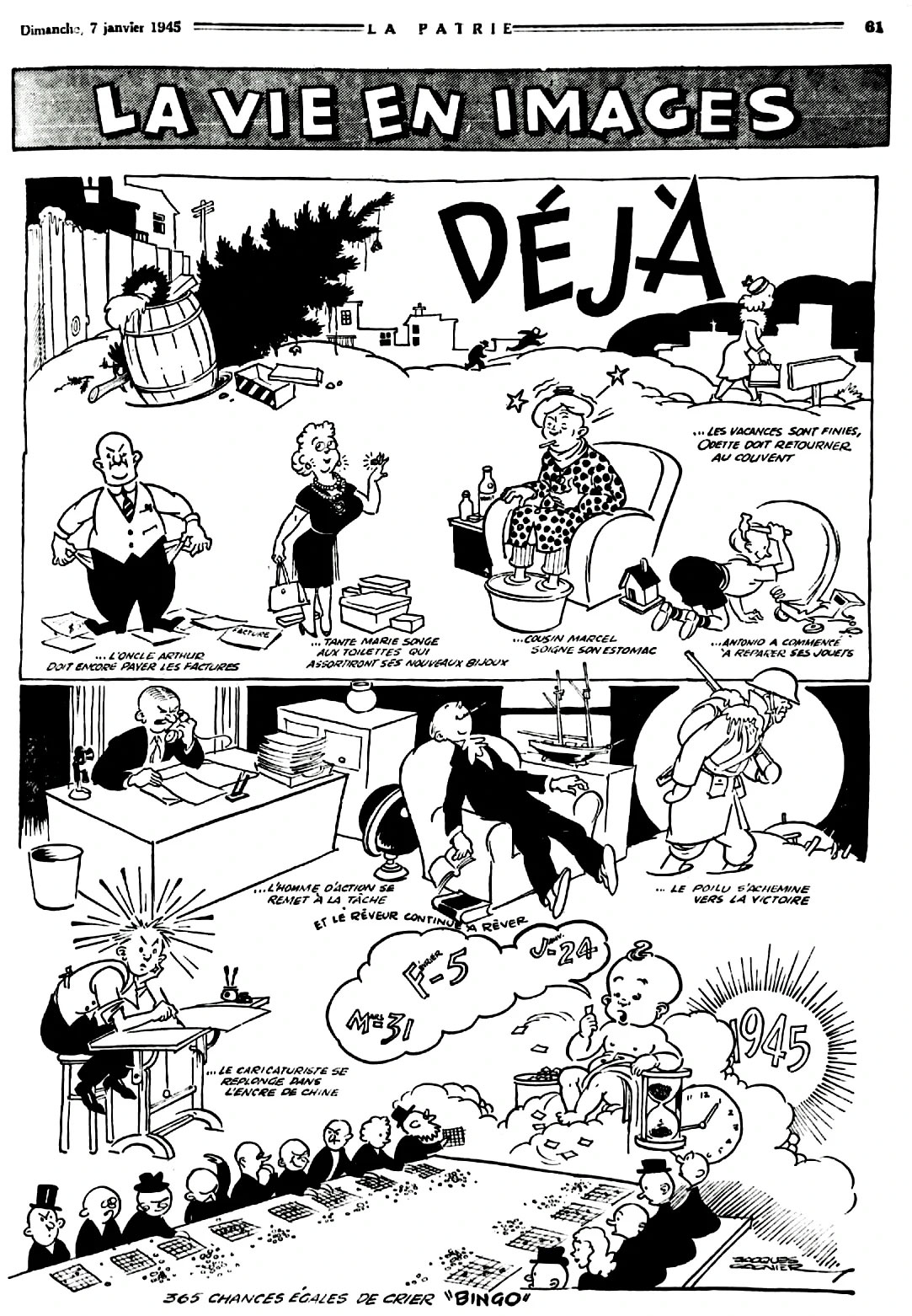'La Vie en Images', about the end of the seasonal holidays (La Patrie du Dimanche, 7 January 1945).