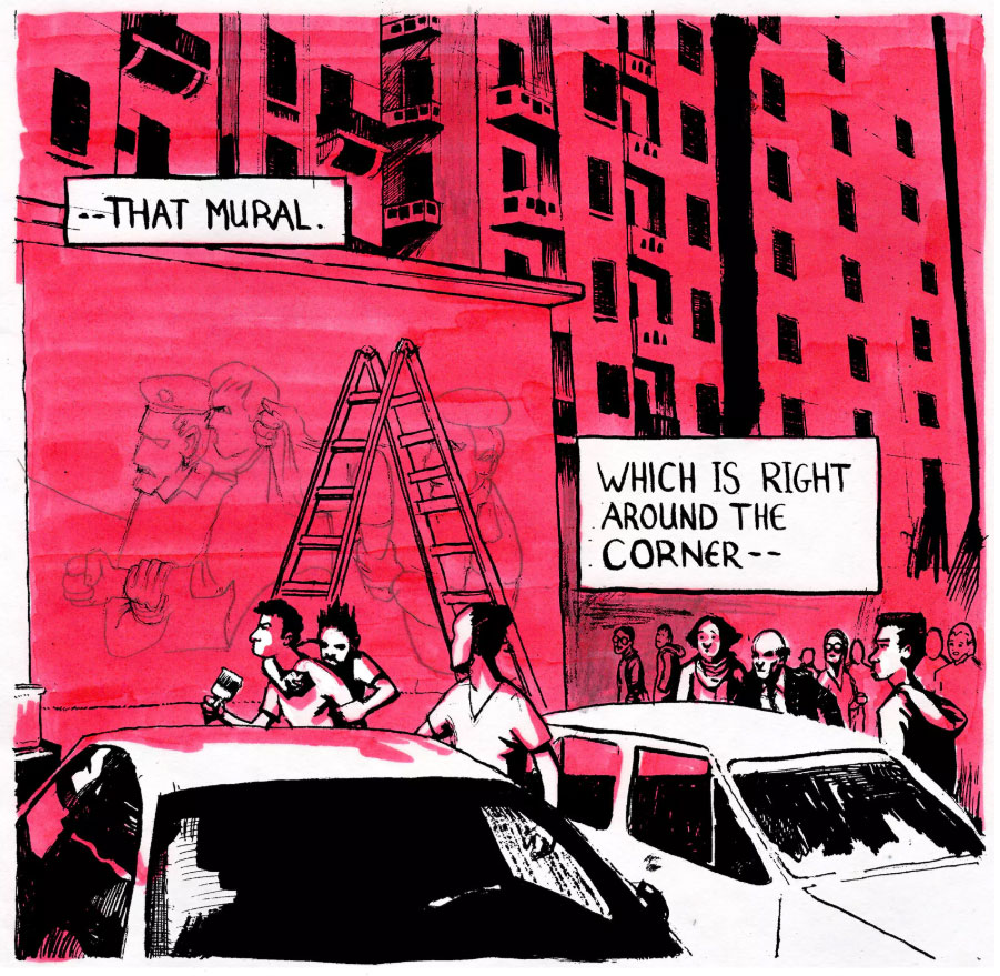 Ganzeer is a versatile Egyptian artist, notable for his socio-political messages. Much like the Tunisian artist Nadia Khiari he rose to prominence during the 2011 Arab Spring, when many authoritarian regimes in North Africa and the Middle East were toppled after decades of oppression. Together with fellow spirits he made several graffiti murals which criticized the Egyptian government. Since 2014 he lives in self-imposed exile in the United States, where he continues to - literally and in figure of speech - draw attention to the situation in Egypt, but also created artworks which criticize the West. Despite being mostly associated with graffiti art, Ganzeer has also created a few one-shot comics and a full-blown dystopian graphic novel: 'The Solar Grid' (2019).