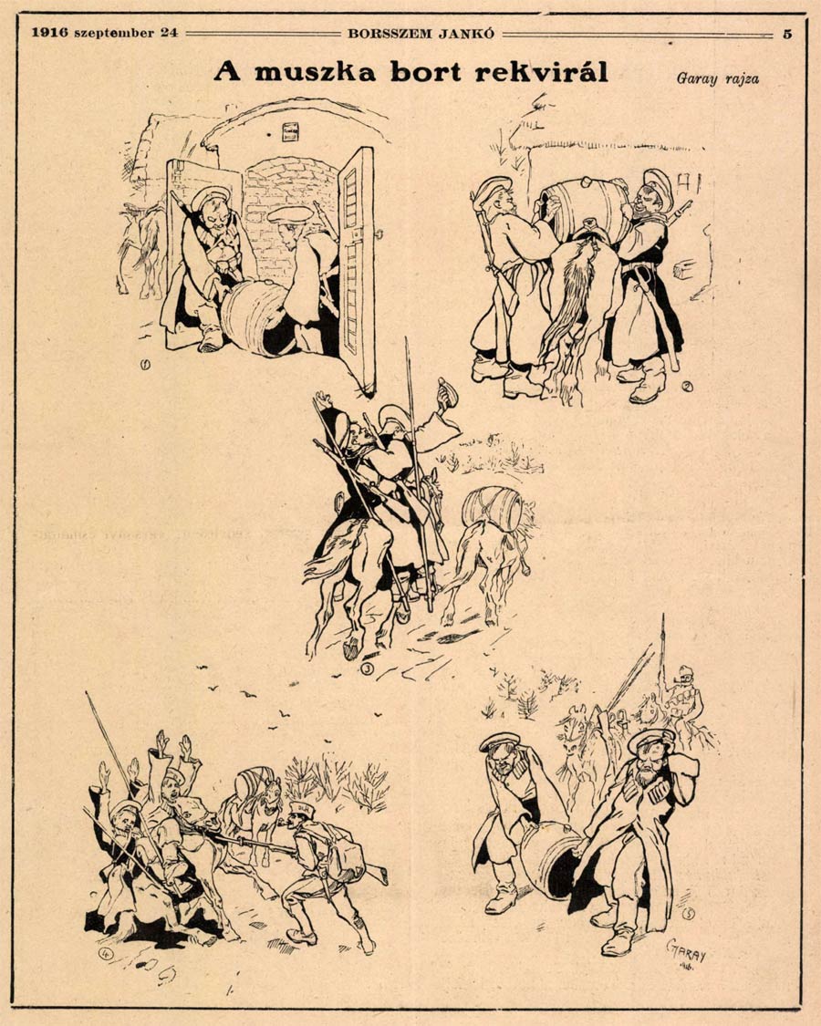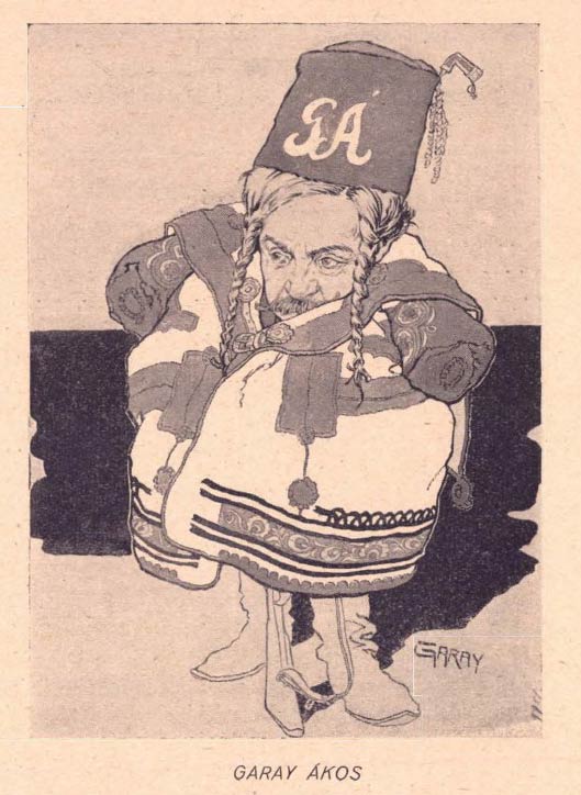 In 1887, Ákos Garay made his debut as a caricaturist with the Budapest satirical paper Borsszem Jankó, where he remained for the next 22 years. His early cartoons were still drawn in a realistic style, but he gradually made them more grotesque. By the end of the 1880s, Garay worked for almost every political and satirical newspaper: Bolond Istók, Fidibusz, Üstökös-Urambátyám, Magyar Figaró and Herkó Páter. He was also a longtime contributor to the bi-weekly Kakas Márton, for which he illustrated the so-called "muscais stories", a series of columns about feudal life in the uneducated Hungarian countryside. His other work for the satirical newspapers included picture stories in the tradition of German comic pioneer Wilhelm Busch. Some of his drawings and stories also appeared in Germany in Lustige Blätter.