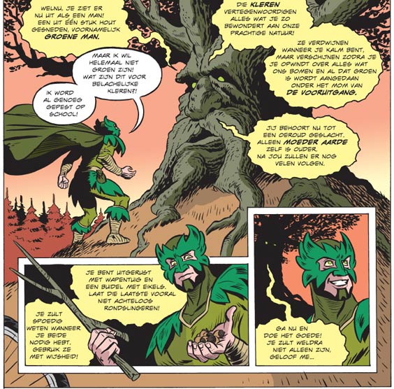 In 2011, Gerritsen joined Michiel van de Vijver, René Leisink, Rob Derks and Jan-Dirk Barreveld at Studio Noodweer in Nijmegen, and he has regularly worked through Studio Funny Farm in Arnhem as well. Apart from his comic projects, Gerritsen has also done commercial assignments, varying from illustrations for staff magazines and educational comics, including the ecological superhero 'Greenman' for the Dutch Cultural Society in 2011 (script by Jaap Dirkmaat). With Noodweer colleagues Robby van der Meulen and Michiel van de Vijver, he made the landscape format-shaped comic book 'Alles Anders?' (2012) for the Friends of the Aphasia Center Foundation.
