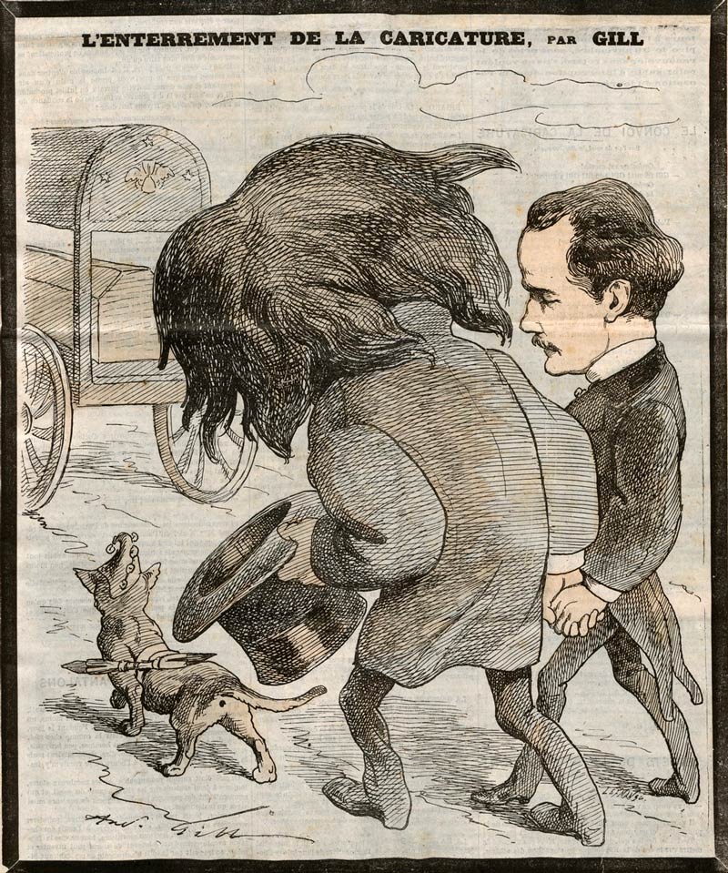 While regular people laughed at Gill's hilarious caricatures, the authorities were less amused. On 3 November 1867, he drew a cartoon depicting Pope Pius IX and Italian politician Giuseppe Garibaldi as masked wrestlers, which caused enormous controversy. A few weeks later, on 17 November 1867, Gill drew another scandalous cartoon which portrayed French emperor Napoléon III as the literary character Rocambole. The chief editor of La Lune, François Polo, was fined and sentenced to two months of jail. On 19 January 1868, his magazine was forced to close down.
