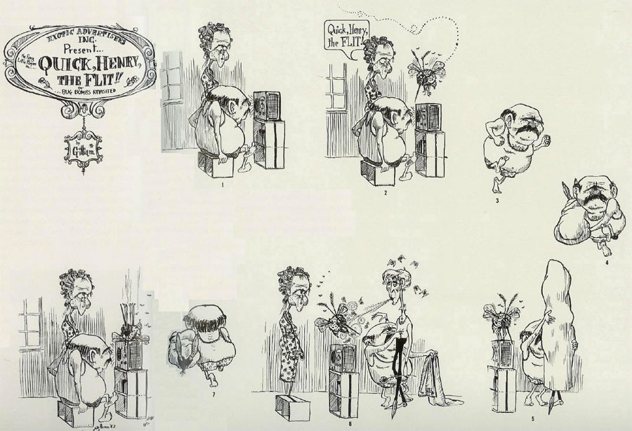 1962 comic strip by Gilliam, drawn in college, with a reference to an ad campaign of Quick Flit insecticide, created by Dr Seuss. Here the term doesn't refer to a "flit gun", but a slang expression for a homosexual.