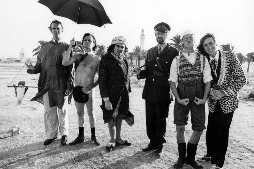 The Monty Python team in 1978 (John Cleese, Terry Gilliam, Terry Jones, Graham Chapman, Michael Palin and Eric Idle).