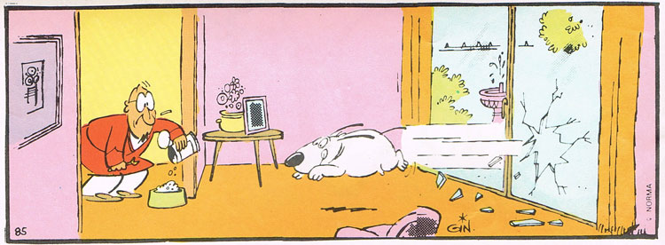 Jorge Ginès Soteras, better known simply as Gin, began his career in 1954. He started by drawing series like 'Mary-Paz', 'Susi' and 'Miguelin y su perro Tizón' for the magazines Florita and Yumbo. From 1957 onwards he cooperated on magazines like DDT, Pulgarcito, La Risa, Tío Vivo and Can Can. In the early 1960s he started to focus more on illustration. He has illustrated for Lui and Playboy, and he was one of the main artists of L'Infantil. In 1966 Gin began an association with the Macian studios, where he worked in cartoon animation.