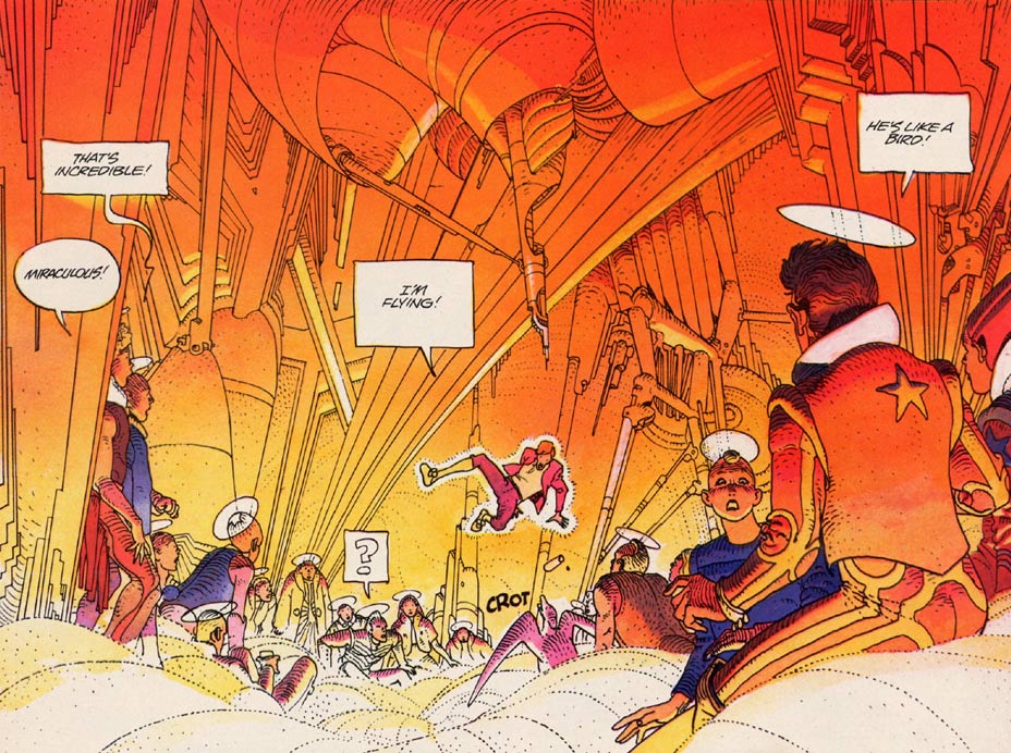 Moebius was highly influenced by drugs and the philosophies of French New Age guru Jean-Paul Appel-Guéry and Swiss nutritionist Guy-Claude Burger for his next major work, 'Le Monde d'Edena' ('The Aedena Cycle'). The artist's journeying lifestyle also left its mark on the comic; the installments were drawn in Tokyo, California and France. The cycle had its origin in a promotional comic Moebius had made for French car manufacturer Citroën in 1983 ('Une Croisière Citroën sur l'Étoile'), in which two characters are transported to a "Garden of Eden" in another galaxy. Éditions Casterman collected the rest of what has to be Moebius' most philosophical series in four books between 1988 and 2001. Main themes are dreams, nutrition, health, biology and sexuality, structured societies and the archetype of good and evil. The series was published in English by Marvel/Epic comics between 1988 and 1994.