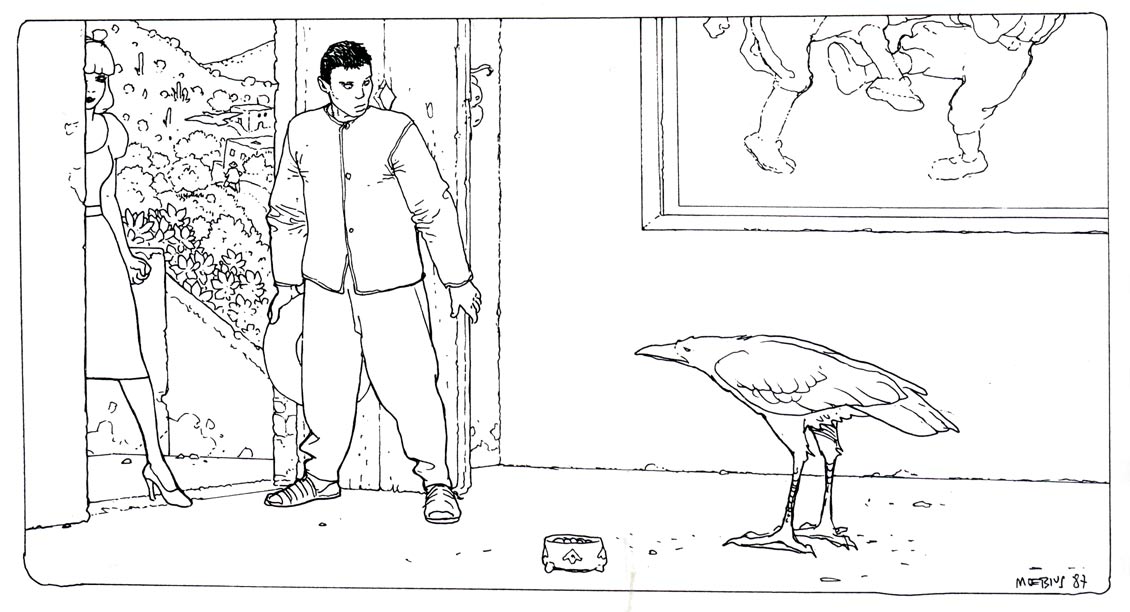 Several art books with Moebius' drawings and paintings have been published, such as 'Starwatcher' (1986), 'Made in L.A.' (1988), 'Quattre-vingt huit' (1990), 'Chaos' (1991), 'Chroniques Métalliques' (1992), 'Fusion' (1995), 'Une Jeunesse Heureuse' (1999). He additionally made illustrations for books and magazines, including an edition of Paulo Coelho's novel 'The Alchemist'. He also worked with Coelho on the video game 'Pilgrim' in 1997. In 1999, Giraud released 'Giraud/Moebius - Histoire de mon Double', which featured a biography of Giraud by Moebius and vice versa. From 2004 to 2010, Stardom published 'Inside Mœbius', an illustrated autobiographical fantasy featuring many of his longtime characters, such as Major Grubert, Blueberry and Arzak. The project covers 700 pages and was published in six hardcover volumes.