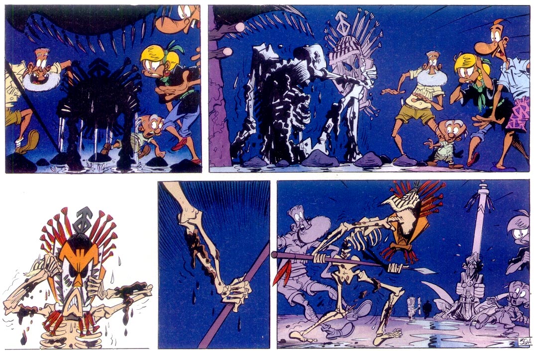 In the second half of the 1980s, most of Gleever's regular work for Eppo/Wordt Vervolgd had come to an end. He decided it was time to embark upon a "real" comic. He teamed up with his friend Kees de Boer to write an adventure series loosely inspired by the 'Indiana Jones' movie franchise. The concept stars the employees of an ethnological museum who roam the world in search of ancient artefacts. Gleever concentrated on the artwork, and Wilma Leenders provided the coloring. The project had been two-and-a-half years in the making when 'De Roep van het Masker' (1990) finally began serialization. By then, the weekly Eppo/Wordt Vervolgd had been transformed into the bi-weekly Sjors en Sjimmie Stripblad, and was no longer published by Oberon but by Big Balloon. Two more serials followed: 'De Maya-Codex' (1992) and 'De Jum van de Ararat' (1994). The first two stories were published in book format by Big Balloon. Silvester picked it up in the early 2000s and collected the entire series in three albums. 'Het Felix Flux Museum' was also published in Finnish and Norwegian. Despite critical praise, the authors had to cancel the series due to lack of time and prepublication possibilities.