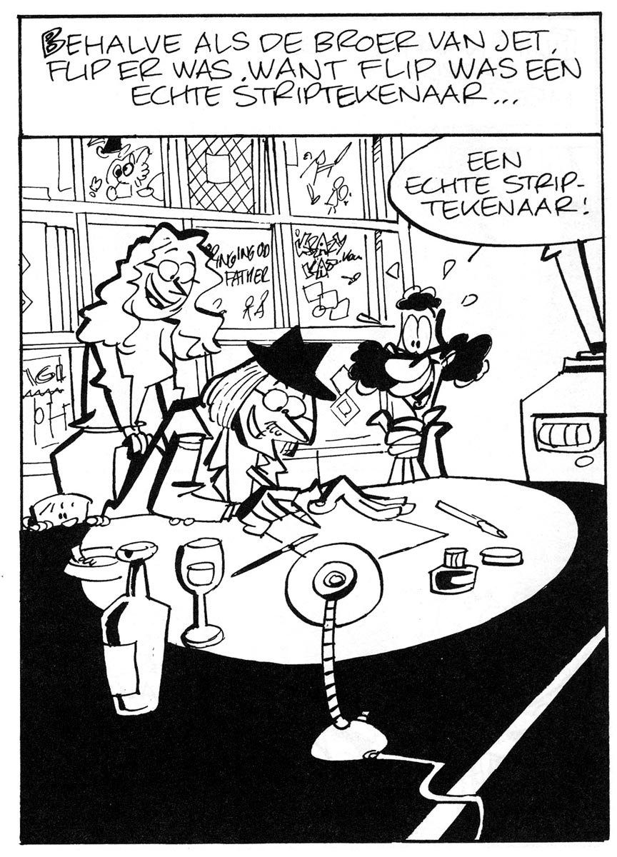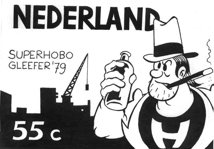 Born in 1960 in Naarden, a town in the Gooi region of North Holland, Gerard Leever knew he wanted to become a comic artist when he was nine years old. Together with his brother Johan, he visited many Dutch artists in the hope of obtaining some of their original artwork. At age 14, he saw his comic strip 'Daan Doffer' (1974) published in a paper for pigeon fanciers. Later that decade, he worked in the Wammes comic shop in the nearby town of Bussum, where he met the legendary cartoonist Flip Fermin, who was the brother of the owner. Fermin gave him his first lessons in drawing comics. Early Gleever artwork appeared in Har van Fulpen's comic magazine Speedo (#2, 1977), on the cover of Kees Kousemaker's Lambiek Bulletin (#7, 1978) and in the Wammes fanzine De Snavel. Fermin wrote him a script with the superhero character 'Superhobo' (1979), but this story remained unfinished. Years later, in 2000, Leever revived the character for his contribution to the "Pincet" series of mini comics by De Plaatjesmaker. He redrew and completed the original story for publication in the Funny Farm magazine Razzafrazz in 2005. Besides Flip Fermin, arists like Albert Uderzo, Daan Jippes and Wilbert Plijnaar became major influences on Leever's work, as was Preston Blair's guidebook 'Cartoon Animation'.