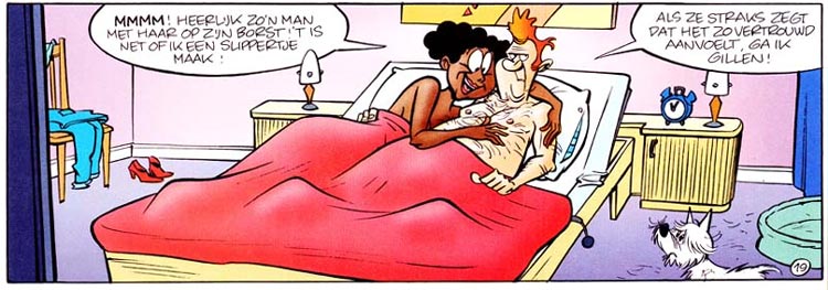 In 1996, Gleever and Jan van Die started their family gag comic 'Gemengd Dubbel' (1996-2005) in the TV guide Troskompas. The series revolves around a multicultural family. Father Anton is a white man married to a black woman, Rosita. Together they have a white teenage daughter, Rox, and a black ten-year old son, Reggi. The family dog is named Animo. Since 2021, older episodes of 'Gemengd Dubbel' have appeared in the second run of Eppo magazine, published by Uitgeverij L.