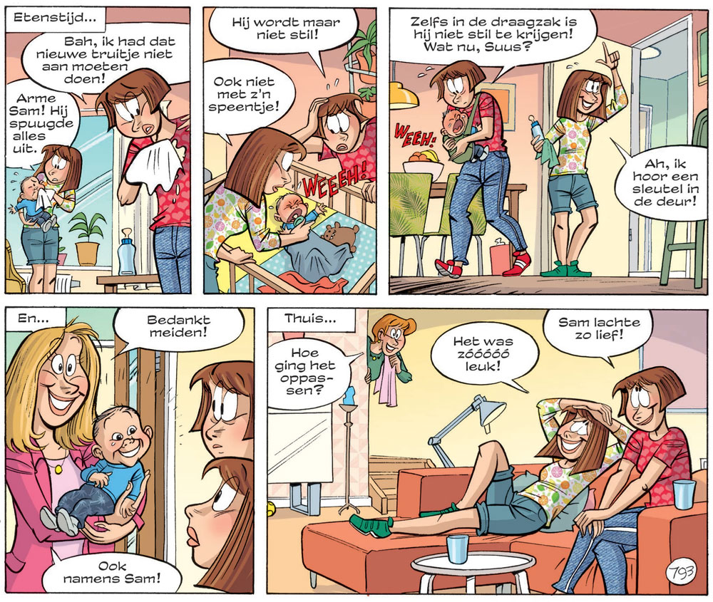 'Suus & Sas' from Tina #30, 2019. Gleever's grandson Sam has become a regular side character. Also appearing is "aunt" Kelly, the comics version of the author's daughter, who originally was one of the original inspirations for 'Suus & Sas'!