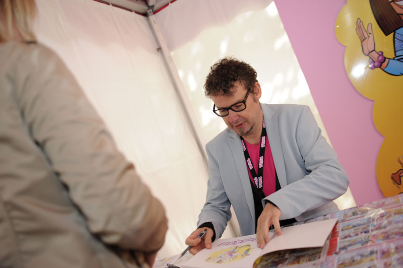 Gerard Leever, also known under his pseudonym Gleever, is one of the Netherlands' most recognizable authors of humorous children's comics. He has worked for magazines like Eppo, Sjors & Sjimmie Stripblad, Donald Duck, Taptoe, Tina, Troskompas, Suske en Wiske Weekblad, Jetix Magazine and Dolfje Weerwolfje, creating many series. Generations of Taptoe readers grew up with his iconic children's comic 'Oktoknopie' (1985-2009), a gag strip about a young boy and his sentient toy. The series was also translated into Spanish as 'Oktavio'. Since 2001, Gleever is also responsible for the most popular feature in the girls' magazine Tina, 'Suus & Sas', about two twin sisters. He additionally made other children's humor comics, like 'Ernst Vrolijk & Dick Hout' (co-created with Hanco Kolk and René Meulenbroek, 1984), 'De Vloek van Bangebroek' (1984-1985), 'Kanaal 13' (1985-1986), 'Het Felix Flux Museum' (with Kees de Boer, 1990-1992) and 'Dik van Dieren en Zo' (1995-2003). Gleever also drew the family gag comic 'Gemengd Dubbel' (1996-2005) for the TV guide Troskompas, reaching a more mature audience. His appealing creations earned Gerard Leever the nickname "Godfather of Dutch children's comics". At the same time, Gleever holds historical significance for being - together with Peter Pontiac - one of the first Dutchmen to draw autobiographical comics, in his case through his diary comic 'Gleever's Dagboek'.
