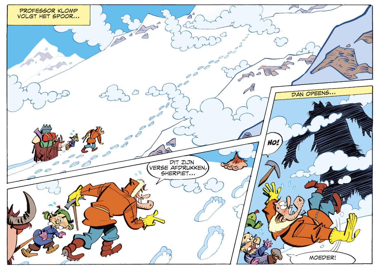 A new recurring client during the 2000s period was the educational publishing house Zwijsen. First of all, Gleever revived his 'Dik van Dieren' concept for the short-lived series 'Pim, Pam en Pluis' (2007-2008) in Roetsj!, as well as 'Zoo op Zolder' (2009) in Dolfje Weerwolfje Magazine. He also contributed several booklets to Leesleeuw, a book collection aimed at language teaching. 'De Vloek van Bangebroek' was revived in the installments 'Mon Ami le Monstre' (French, 2008) and 'The Curse of Yellowville' (English, 2008), while Leever created several "Abominable Snowmen" for the book 'Phil, Polly and the Yeti's' (2009). The characters returned in Dolfje Weerwolfje Magazine under the title 'De Yeti's' (2009-2012). In that same magazine, Gleever subsequently wrote and drew 'WeerWolfWezen' (2013), featuring characters from Paul van Loon's original 'Dolfje Weerwolfje' book series.