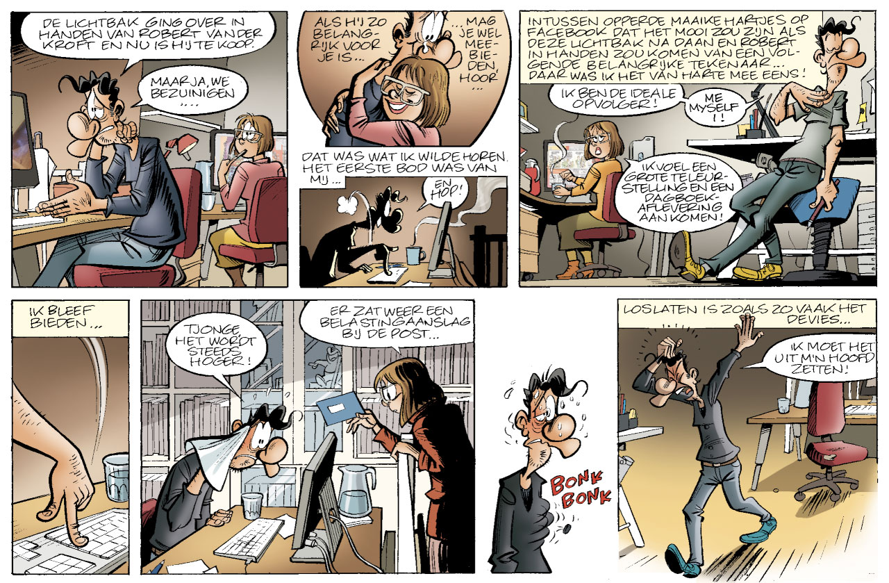 When the Dutch section of Robbedoes was canceled, Leever's prominence at the Dutch publishing house Oberon rose. First of all, he and scriptwriter Jan van Die launched 'Kanaal 13' (1985-1986) in Eppo/Wordt Vervolgd, a series of two-page stories about a fictional TV channel and its quest for higher ratings. In 1987, one album collection appeared at Van Die's own Divo imprint. Gleever illustrated the magazine's mail section and provided original cover illustrations starring the magazine's foreign characters. Between 1985 and 1987, he most notably made cover drawings for the Dutch album publications of the originally British creations 'Billie Bunter' ('Billie Turf') and 'Bessie Bunter' ('Bessie Turf'). In 1986, Gleever succeeded Mark de Jonge as the illustrator of the jokes page in Donald Duck weekly. It was one of the few editorial non-Disney pages in the magazine. Leever illustrated the section until 1996, when Kees de Boer took over.