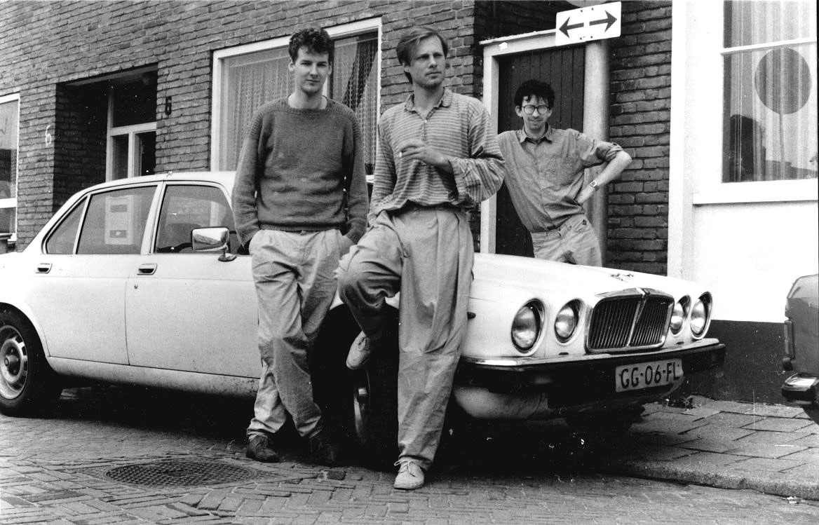 Gerard Leever, Hanco Kolk and René Meulenbroek in front of the Studio Arnhem building in the Wijkstraak in Arnhem (around 1984).