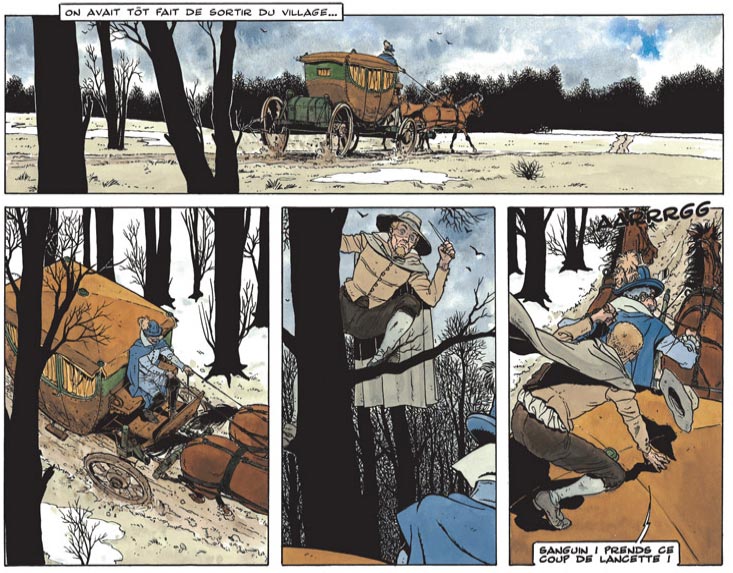 Goepfert then turned to advertising art. Among his assignment were the album 'L'Odyssee de Chicoria' for Chicorée Leroux in 1987, and 108 pantomime comic strips and a comic book for Malabar chewing gum between 1991 and 1999. He returned to comics more prominent in 1995 when he created 'Le Fou du Roy' with writer Patrick Cothias. This series about Molière's youth was published by Glénat until 2004. Goepfert additionally wrote and drew 'Le Lys Noir' for the same publisher in 2000-2002. He succeeded François Dermaut as the artist of 'Les Chemins de Malefosse', and has continued this series with writer Daniel Bardet since 2005.