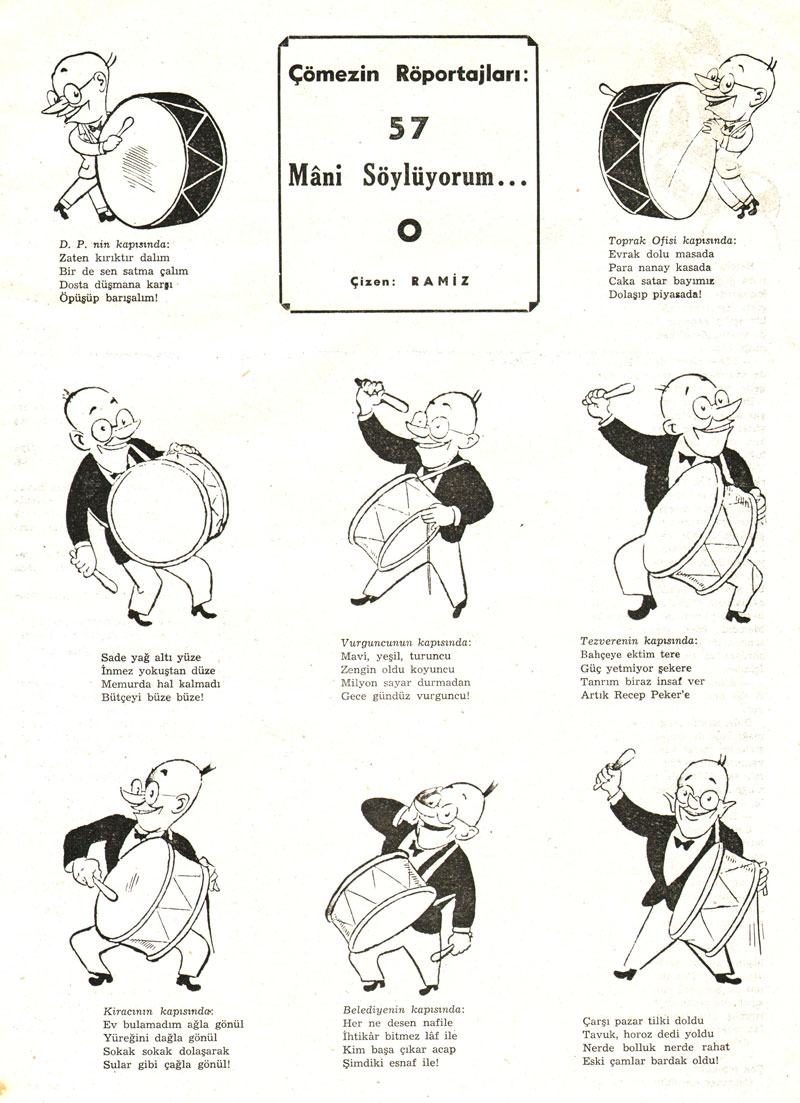 Among Gökce's other comics creations are 'Çömez' ("The Disciple") and 'Yeni Zengin' ("The Nouveau Riche"). The latter was also collected in book format.