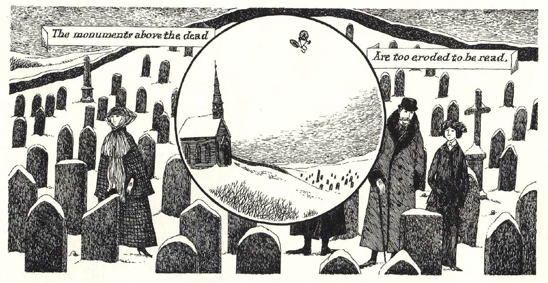 Edward Gorey was a mid- to late 20th-century American writer and book illustrator. Often pigeonholed as a "children's author", his surreal, ominous but often witty stories also gained him a cult following among adults. Gorey's books are a peculiar mixture between illustrated poetry, dark nonsense and dry, black comedy. His signature work is 'The Gashlycrumb Tinies' (1963). He remains a highly popular and influential author, whose style is still imitated to this day, leading to its own eponym: "Gorey-esque".