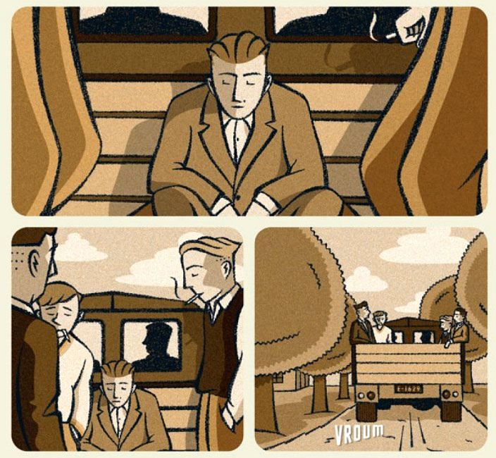 One of De Graaf's stories was published in the Drawn and Quarterly Showcase #2 from 2004 on, and his collected autobiographical work was published in France as 'Jeux de Mémoire' in 2010. At that time, De Graaf also published 'Scherven', the first part of his diptych about two separated lovers during World War II, largely based on the stories of his grandmother and his uncles. Besides his personal work, De Graaf has participated in collective projects like 'Mooi Is Dat!', 'X Was Hier' and 'De Filmfanfare'.
